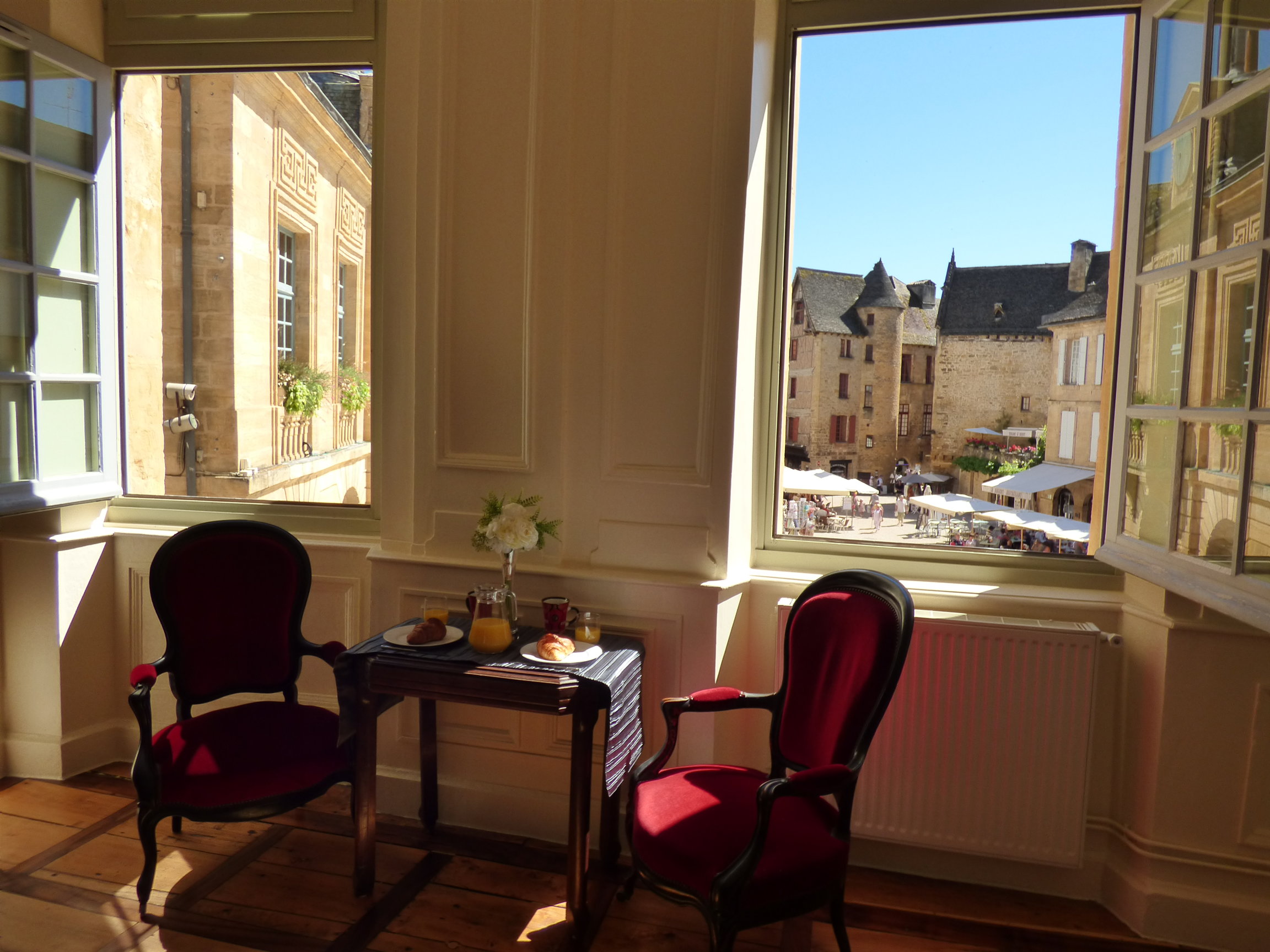 With uninterrupted views over Sarlat's main square, Place de la Liberté, you can watch the comings and goings of this vibrant centre of activity with its street entertainers and farmers' market and absorb its ambiance from the comfort of your window.